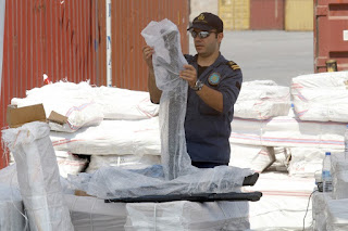No entanto em 14 daqueles contentores de 40" foram descobertas pelos guardas fronteiriças da Grécia 52 toneladas de armas e munições, fingindo ser móveis.